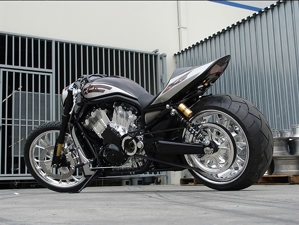 とりあえず左のKATANAモドキはSWAPというか、フレームがワンオフっぽいですが、エンジンはGSX1300Rベースにターボ+Nosで武装しロー&ロング仕様と自分も是非ともこんな変体仕様が欲しいですwそして右はPerformance Machineのデモ車? ハーレーのV-RODにカワサキ ZX-6Rのシングルシート風にモデファイしたカウルを着けてレーシーな感じに仕上げたマシンでこーゆうのもアリなんだな。と、さすが有名ブランドだけあって作りが綺麗でカッコイイですし勉強になります。