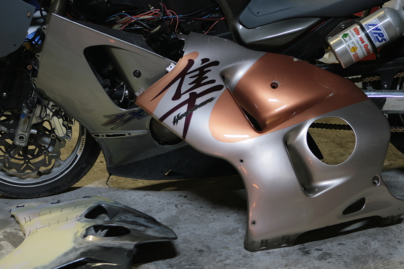 ちなみに前回の隼のカウルと今回のカウルでは若干爪の入る位置などが違うようですが、元々違う車種に無理やり取り付けるのでお構いなしに作業を進めていきます!