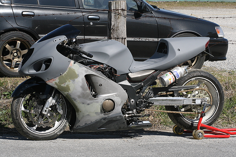 そして今までもゼファー400を改造して大型に喰らい付いていったり、ボロいAE86にターボを付けて当時働いていたショップのお客のGTRを抜いてやろうと無茶したりと基本的に冗談っぽい仕様で相手のウケを狙うのが好きなので無駄に背伸びしてバカ真面目に目標や記録を狙うのも良いのですが、それはとりあえず他の人に任せておいて、やはり自分は自分らしく一見真面目そうで ”実はバカ”なやり方で人と違ったアプローチで一段下から上を狙って行こうと決めました^^