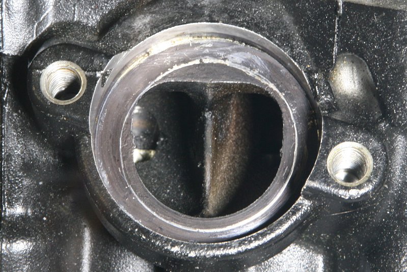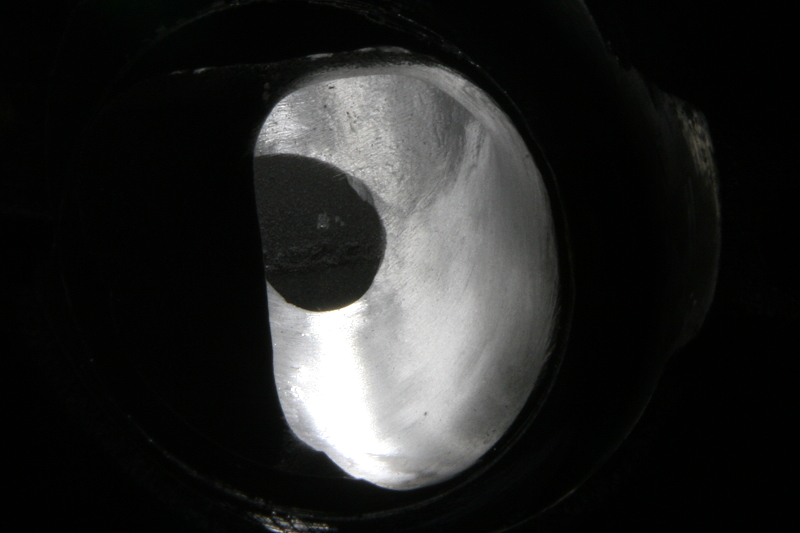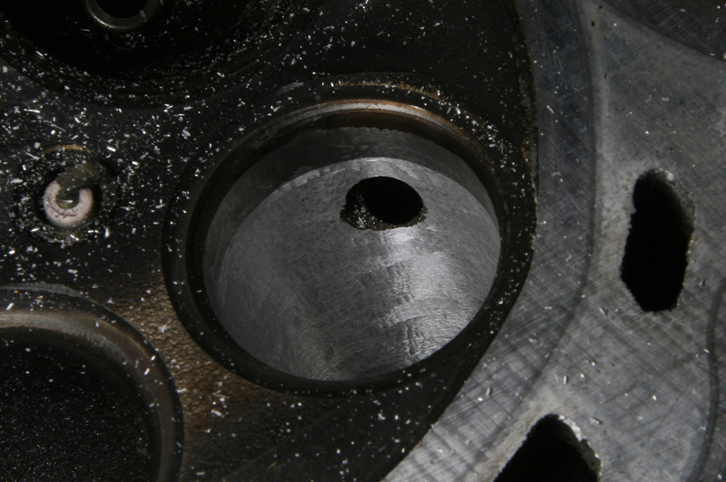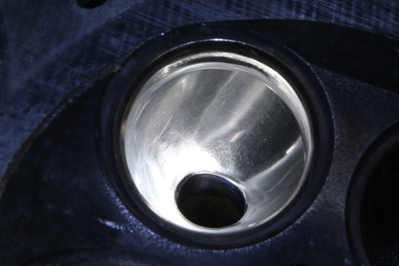 そしてこちらは今回使用する本番用のヘッドを内燃機屋さんに送る前に吸気側のガイド穴周辺を仮で仕上げたモノですが、同じ超硬バーでの粗削り段階でもバーの回転数や当て方などで削れ方(仕上がり)が変わりますので、初めての場合などは削る前に何か別のモノで試してからの方が無難かもしれません。