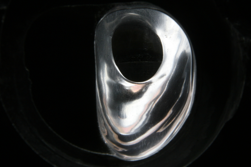 そして#1500での作業になりますが、#1500で磨く時だけ深く傷が付かないよう、指でペーパーを押さえてセコセコと磨きます。画像では少し光が反射して見にくいですが、先ほどのガイド穴周辺の傷や歪みはこのような感じで残ります。