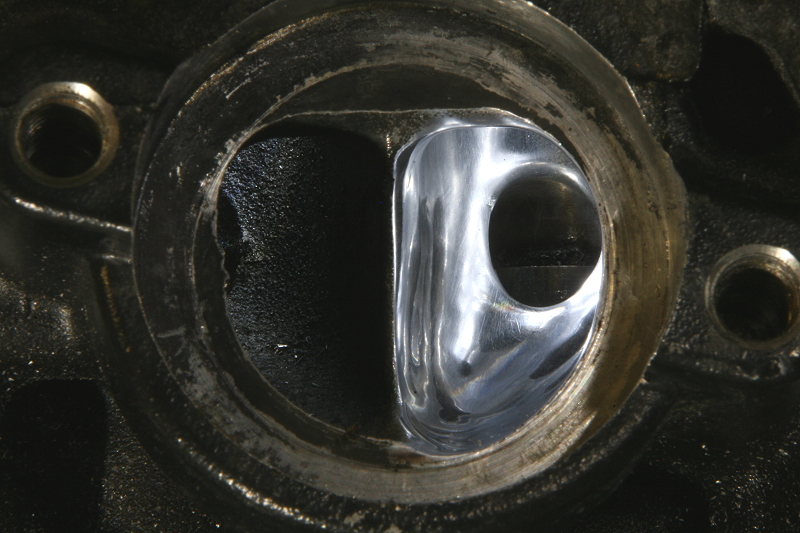そしてポートを研磨していると最後の方ではポート内の仕切り先端がナイフの刃のように切れが良くなっていますので指でせっせと磨く時に誤って指の肉を削ぎ落とす事があるので、最終仕上げまではペーパーを当ててエッジを丸くしておいた方が良いかも知れません。吸排気共にこの仕切り板の役目(効果)があり、ここを無闇に形状変更してしまうと良くないので注意です。