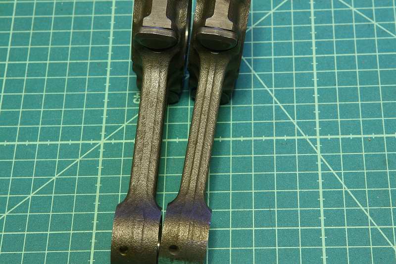 ちなみに本当はストックのコンロッドがあるので選別して重量の近いモノを選んで使おうかと思っていたものの、いざ自分のエンジンをバラしてみたら両者間での重量区分が無加工の段階で大きな差があり、そこから研磨して重量を合わせるとなると一方はおもいっきり肉薄で一方が肉厚と強度的に偏りそうなので合わせることが出来ませんでした^^: