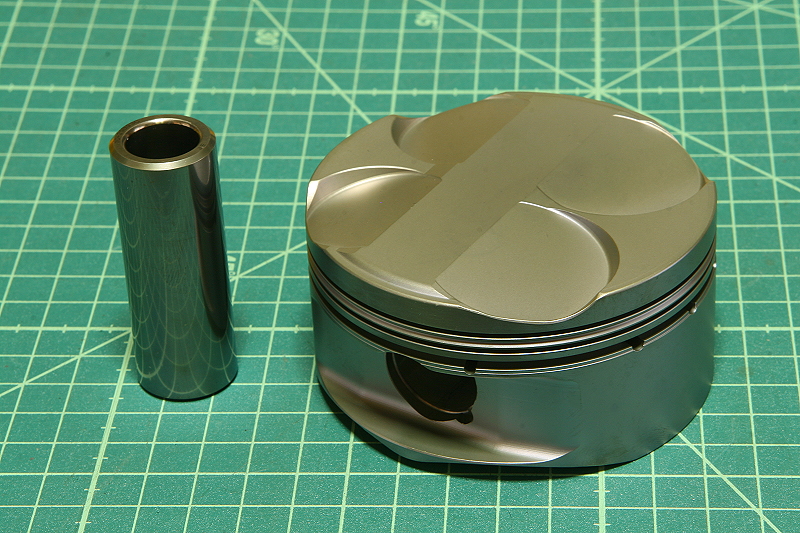 ちなみにこちらのピストンピンですが、左画像の右からZX12R純正、ZX14純正、ZX12R用JE製と並べてみましたが、一昔前のごついピン形状と違い、純正でもNSR250などのように軽量化のためにしっかりテーパー加工がされており非常に好感触な作りとなっています。