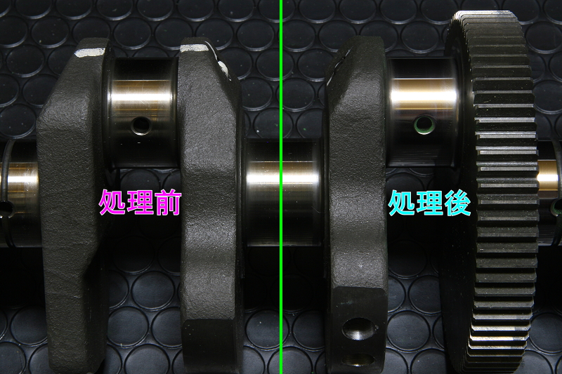 また側面研磨をしてその後にWPC処理などのショット加工を施す事で全体の疲労強度は純正以上に増し、硬度も上げることが出来るという結果がありますので本来ならトータルでの加工をお勧めします。