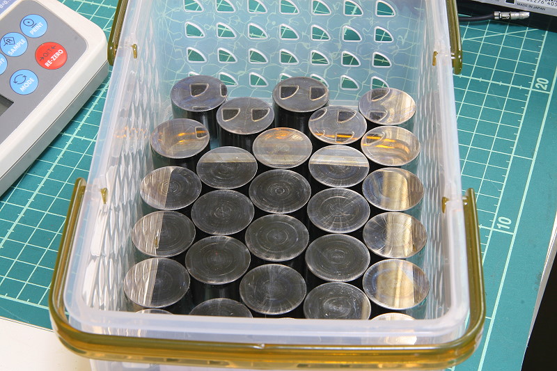 そして相変わらずネタは12Rの作業ですが、今回のエンジン用にと各3つのシリンダーから取り外した計48個のリフターを状態の良いモノと悪いモノとに選別しているのですが、今回ジャンクヘッド、予備ヘッド、そして降ろしたエンジンから取り出したリフターのそれぞれを別々に置かず全部同じ入れ物に混ぜて洗浄してしまったところ、結果的にジャンクヘッドに付いていたであろうリフター達が酷い状態だったようで選別するのが余計大変になってしまい、こんな事なら最初に確認しておけば良かったです・・・^^: