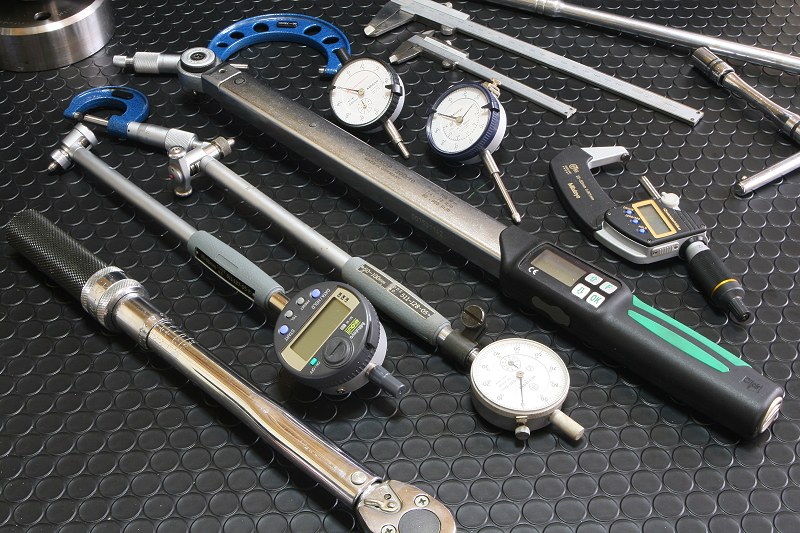 そしてこちらはエンジンをイジる際に各部を計測する工具達ですが、一言に計測と言っても精度を求めると同じ用途の工具でも一つ一つのキャパが狭く非常に多くの道具が必要となります。