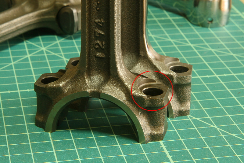 また、コンロッドの側面を重量を合わせつつリューターなどで研磨し、最終的に鏡面仕上げにする加工がありますが、側面研磨をすることにより応力による耐久性は向上しますが、コンロッド自体の全体的な強度が上がる訳ではありません。