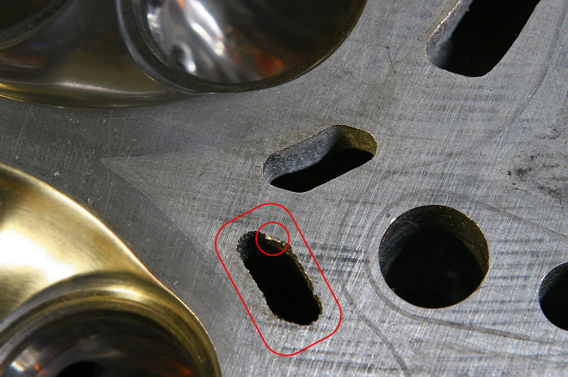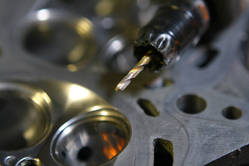 普段、超硬バーなどを使う時もありますが、この方法だと勢い余って削り過ぎたり、バーが弾かれてシリンダー面を走ったりというリスクが少なく、奥側の角などのバリも研磨できるので非常にやり易いのですが、力を掛けすぎてドリルの刃が折れたり、動かす勢いで勢い余ってヘッド面などに傷を付けてしまう可能性も有りますので、その辺だけ注意しながらリューターを上下左右に小刻みに動かし、バリを取り除きます。