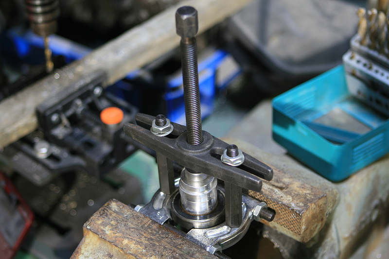 そして今回は社外ホイールの専用ハブでベアリングにカラーが圧入されている為、仕組みが見えづらくイマイチ分からなかったので、まずはカラーごとベアリングをハブから外し、仕組みが分かったところで・・・