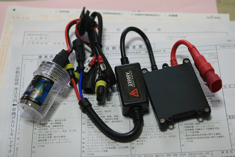 そして今回は、普段の走行時にすり抜けなどでこちらの存在がアピール出来るようヘッドライトにHIDを組み込もうと思い、普通に高い奴を買う気も無かったので、いつものYオクスペシャルで行く事にしました。