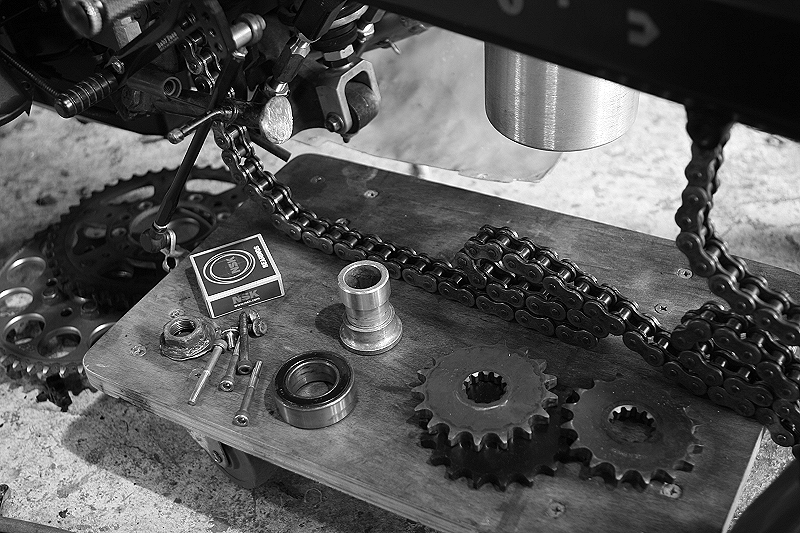そして話を戻して12Rの作業ですが、前回のセッティングでNOS無しでのベースが出来たので、NOSも取り入れた最終仕上げのセッティング準備として二次減速比も見直しつつ、各部のチェックで異常が見つかったリアのハブベアリングを交換します。