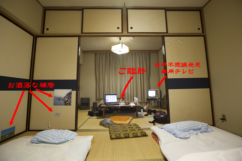 そして以前に泊まった時に押しボタン式だったテレビがダイヤル式にレベルアップし、次回はリモコン式になったりして・・・って期待していたところ、前回同様のダイヤル式で世界不思議発見意外は写らないテレビに降格してました。。。 そんなこんなで準備が終わったらすぐに爆睡です。
