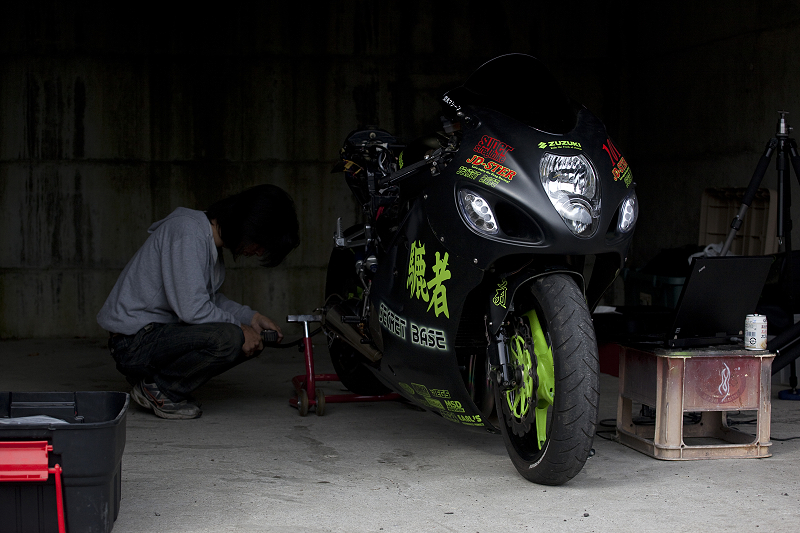 そこで又しても急遽作戦変更でw、とりあえず宿に戻って最後に2本走ったデータを元にイメージで事前に数種類の燃調マップを段階的に作っておき、走り終わった時の感覚を元に「多分、この辺だろう」と準備しておいたマップに書き換えて走ってを繰り返して試すしかないな、とピットにマシンを仕舞い、後片付けをして帰ろうとしたら、当日はピットを他のショップさんが使うので自分等は使えないとのことで、AC電源まで無くなり ”これじゃ明日はノートPCのバッテリーすらもたないな。。。” と、タイムは出ないわ、次から次へと問題が発生するわで、仲間とバイクをトラックに積み込み仙台ハイランドを後にしました・・・。