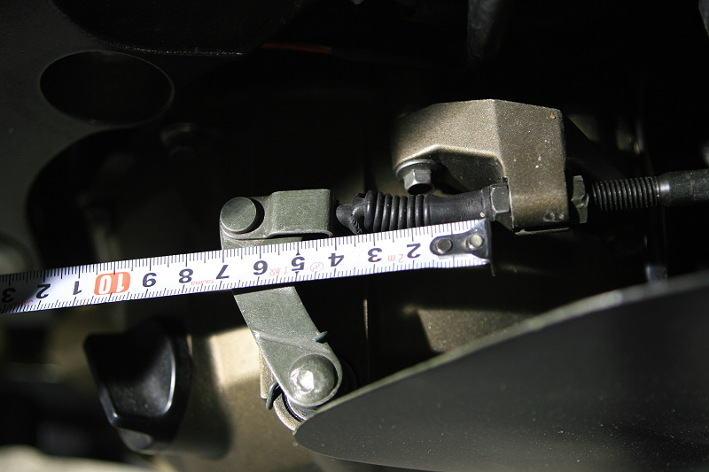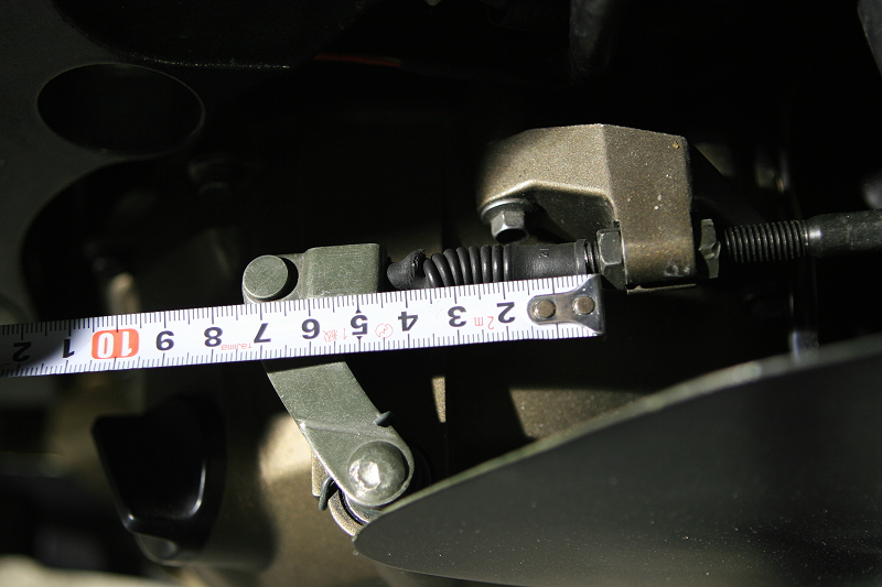 ちなみにダイアルアジャスターでどれ位の調整幅があるのか?ですが、ダイアル1の全開開き側(画像左)の状態でクラッチワイヤーの遊び調整をしてグリップからレバーまでの距離が10cmで、その後は5mm 間隔で狭くなり、ダイアル5の時に8cm (画像右)になります。