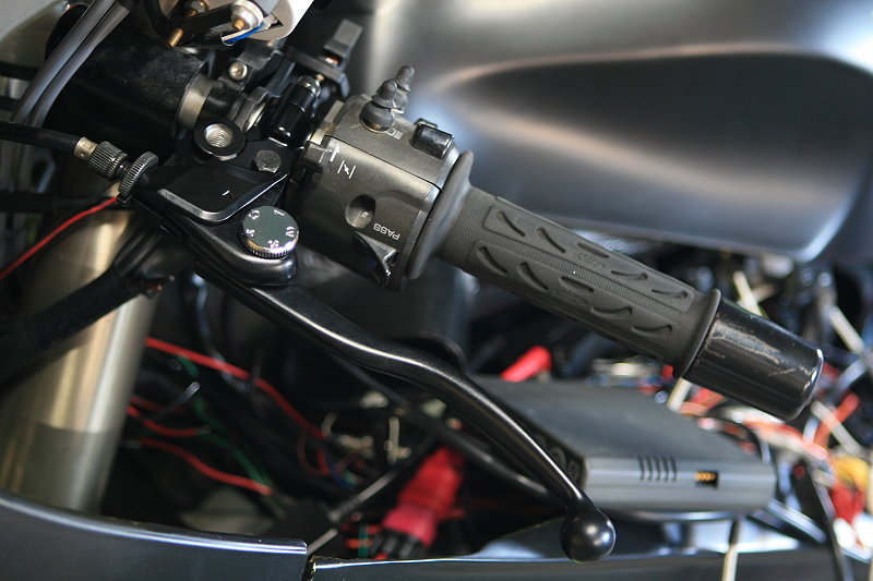 そして今回はまだ1本もまともに走れていないので、前回の走行で気になった部分の対策・・・というか、これは以前から面倒だった部分で、自分は昔からクラッチの遊び加減や繋ぎ加減がさっきまで良かったのに一度気になり始めるとちょくちょく変える癖があるので、12R純正のクラッチレバーだと遊びの変更がワイヤー側のアジャスターに緩み止めが付いていたりと非常に面倒で、特にレースの時など違和感を感じた時に瞬時に変えれないのがネックで仕方がありませんでした。。。