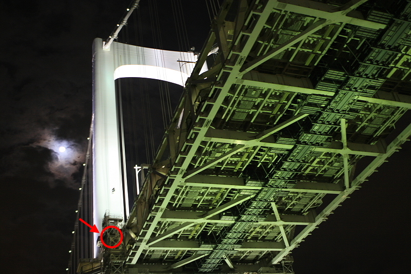 調度この日は土曜日で十五夜の満月が見えたので下からレインボー越しに空を見上げていると、その横にある変な場所が気になり、” お!!、あそこに登って景色を眺めたら絶景では無かろうか・・・? ” と。