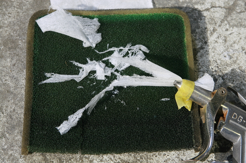 そしてティッシュミサイル発射w エアガン側は既にボロボロですが、フィルターの反対側は常に一定のそよ風状態で終わりました。