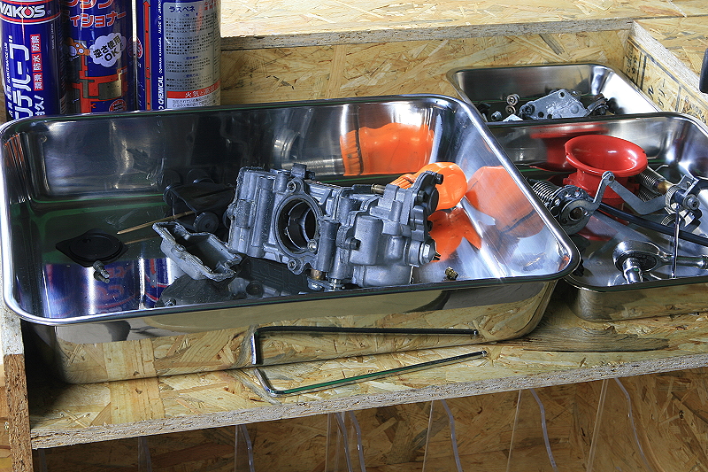 とりあえず入手してしまったからにはそのまま付けても面白くないので、今回の目的は扱い易さと燃費重視ということで題名の通り、車体取り付けセッティング前のマシンに合わせたボディーセッティングとして、このFCRキャブの気になる部分を適当に少しだけイジって遊んでみたいと思います。