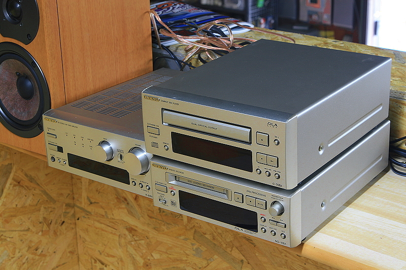 で、この度、休憩スペースも確保出来てコンポの置き場所も確保できるということで前回のFCRキャブに懲りずにまたしてもYオクで検索したところ、画像のONKYO - INTECシリーズのシステムコンポが引越しで置き場所が無いのでという自分とまさに入れ替わりな状況ということで1万円で出品されていたのでコンパクトで寸法的にも丁度良いサイズだな・・・と入札したところ、今回は誰とも競う事無く無事落札。