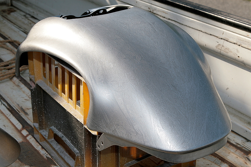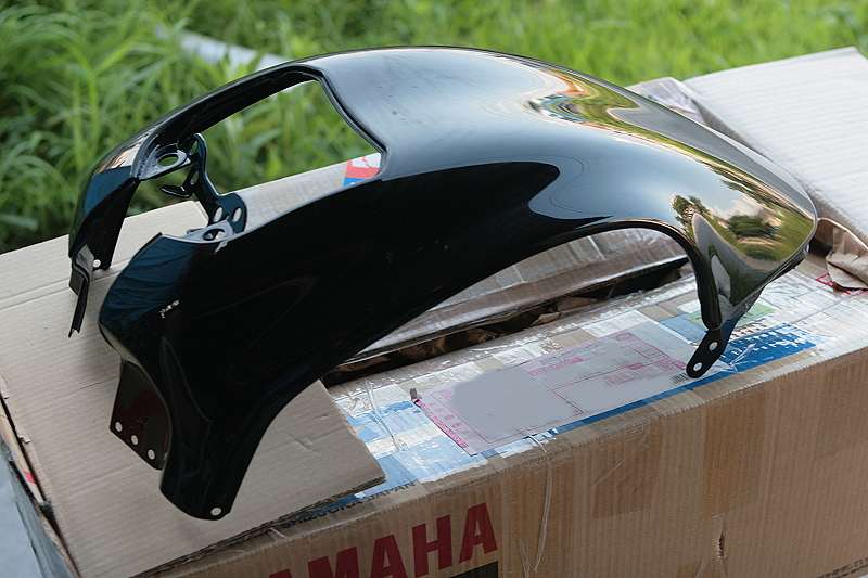 ちなみにそのVMXのペイントを始める前に、一度、外装一式を全体的に水研ぎで足付け研磨をしていたのですが、画像のタンクカバーだけは#800の耐水ペーパーで研磨しても全く傷が付かず、まさかヤマハさん、最近流行の耐傷性塗料とか使ってるのか?と・・・。