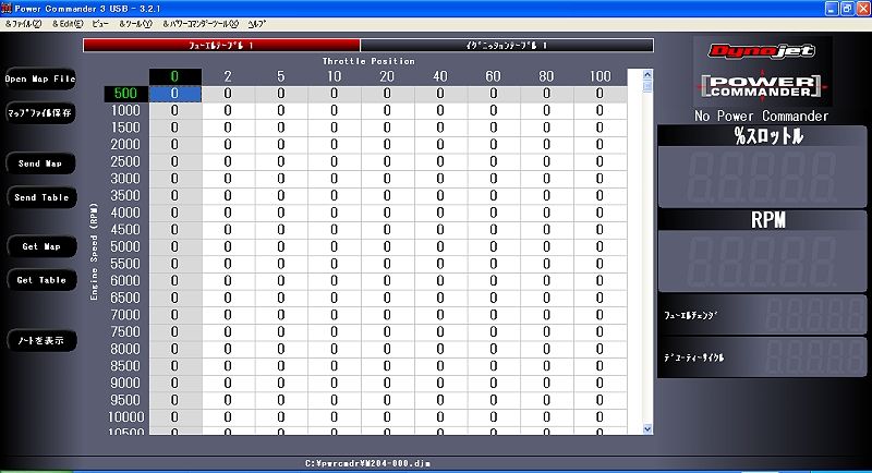 そして最後はバイク用のサブコンでは草分け的なDynojet社のPower Commander V (ファイブ)ですが、上記2機種の設定画面と比べると相変わらず殺風景というか、シンプルというか・・・。