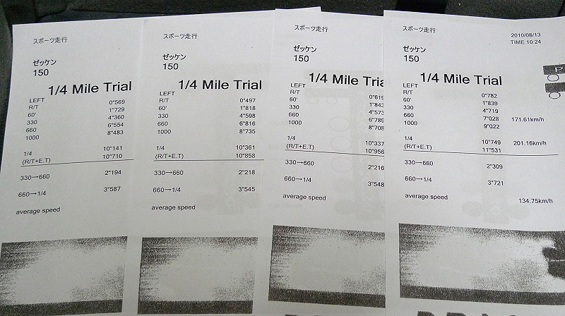 とりあえずこのままではマズイ!という事で、去年調子が良かった半分スリップさせて滑らせながら加速するスタート姿勢を求めてリアサスやら空気圧、さらにバーンナウトのタイミングなどを少しずつ変えてタイムを追い求めた結果、なんとっ・・・