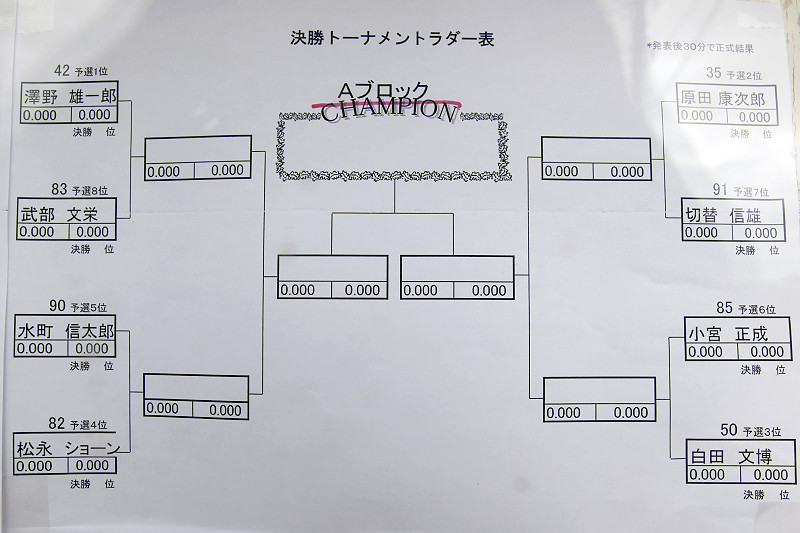 今回のAクラスの予選タイムはトップが6.1秒台で予選8位までのタイムが6.3〜4秒台と0.2〜3秒近いタイム差の中に8台が入っているのですが、自分の前日と当日のタイムを見るとセッティングを変えるたびに少しずつタイムを削ってこれているので、次のトーナメントでの走行でもまだタイムを縮める可能性はある・・というか、スタートさえ決まれば確実にタイムアップは出来るんだよなぁ・・・と。