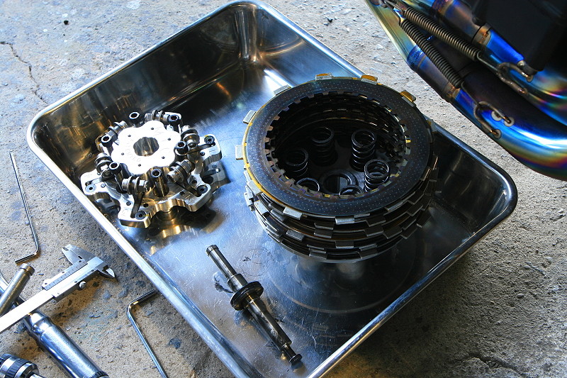 予想していたクラッチワイヤーの伸びや解れでは無いとすると、このジリジリと遊びが増えて症状が進行する原因の持ち主はどこだ?・・・ということで、ロックアップクラッチを組んだことに何か関係でも?と思い、ロックアップクラッチ周辺もバラして点検しましたが、ロックアップクラッチ自体も含めて異常無し。