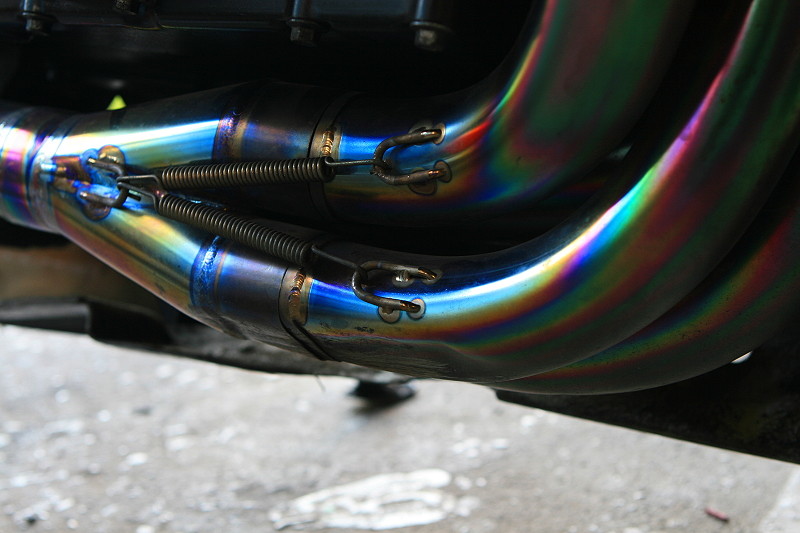 ちょいと何かおかしいことになってやしませんか・・・?と車体下側を覗いて見たら、悲しいことに今回のクラッチとは関係のないエキパイと集合部の異常発見。。。