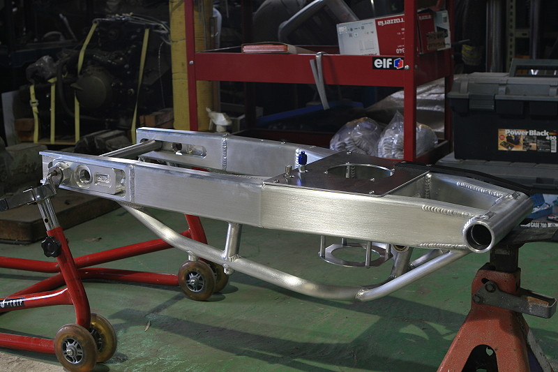 で、毎年少しずつ予定を決めて仕様変更をしながら個人的なテストを兼ねて自分の12Rを要所要所ステップアップさせているのですが、そんな中で昨年の12Rの仕様変更として取り組んだ点は以前から気になっていたスイングアームの延長による変化が知りたかったということで、今回は以前までの純正スイングアーム+6インチエクステンション仕様からさらに2インチ伸ばしたマッキントッシュ製の8インチロングアームに変更してみました。
