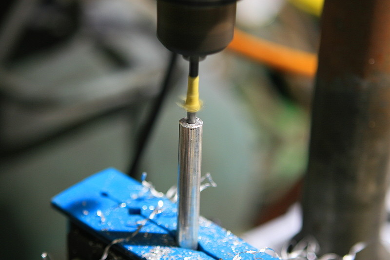 ということでやる事は決まったので、あとはそれに従って10mmのアルミの丸棒に下穴を開けて・・・