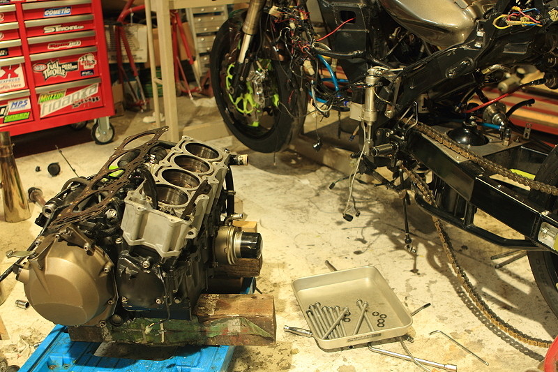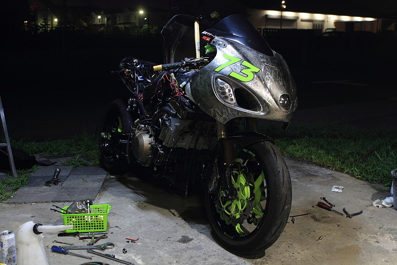 予定ではお盆前には組み上げて車検も取って、軽く慣らしも兼ねてちょっとしたツーリングくらい行けるかなぁ?なんて思ってたハズが、どうせならと一緒に発注した強化スタッドボルトがバックオーダーで品物が揃わず現地からの荷物が出荷されないというオチに始まり、蓋を開けてみればレース一週間前でもエンジンバラバラな何の異常もなく毎度お馴染みなアップアップな状況にww
