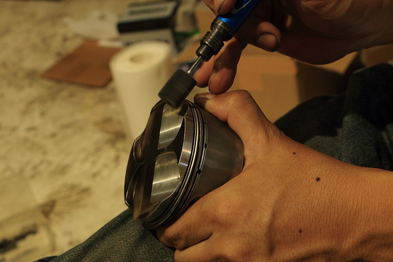 なんて考えつつ本組みする前に加工から戻ってきたピストンの仕上げをしてリングを組んで・・・なんて思いながら作業を進めていたら修正してもらったハズのピストンにピストンリングを嵌めようと思ったらトップリングがリング溝に綺麗に嵌らない。。。