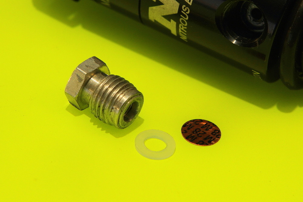 で、セーフティーバルブの仕組みってどうなってるんだ?ということで、セーフティバルブのボルトを抜くとこのような銅の薄い板が挟んでセットされていまして、( 画像は破裂したものではなく新品です )