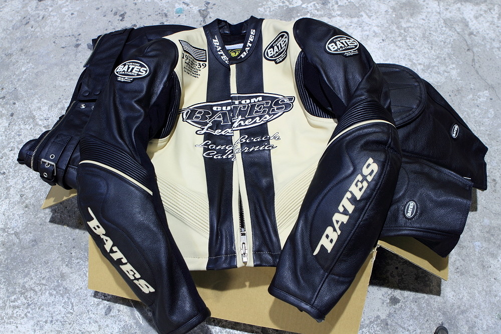 で、さすがにBATESとカドヤは高いから見るだけ無駄でしょw なんて話ながらブース内を覗いたら奥の方に自分が欲しかった10万近くするBATESの2ピースのレザースーツが展示してあって、良いなぁ・・・セパレートでデザインも良いからレースの時だけじゃなく普段着としても着れるから前から欲しいんだよなぁ・・・なんて^^: