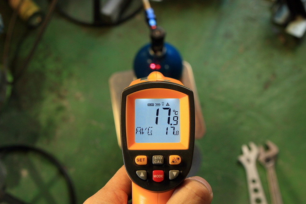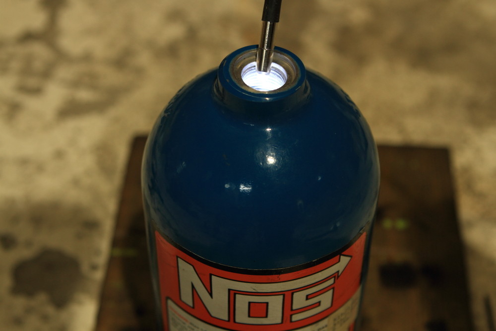 ここ最近、NOSのリフィル作業も増えてきまして数をこなせばこなす程に経験値も上がる訳で、情報の少ないこの分野を進むべく、トライ&エラーで新たなノウハウをちらほら見つけながら職人は日々作業に精励しておりますが、先日、数本のボトルのリフィル作業をしている時にボトルの容量の認識をミスったようで、実際には2lbボトルへのリフィル作業だったのに別の2.5lbボトルの作業と間違えて作業を始めてしてしまい、いつもの様に作業後にボトルの重さを量ったら規定値の重さに達しておらず「あれれ・・・しっかり入りきってないじゃん!?」と勘違いをしてしまったようで、本人はボトルサイズの認識間違いをしているなんて夢にも思ってもいなかったので ” 圧力計が壊れたのかな? ” と・・・、実際には2lbボトルなので十分規定量に達していたのですがまだ足らないと思い込んだ職人は既に容量パンパンなボトルに再度リフィルを・・・