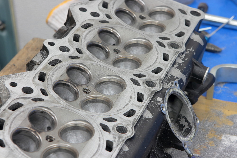 あとは燃焼室もシート周りのフローを考慮して修正しましたが、ここはシートカットと面研が済んで戻ってきたら多少修正が必要になるでしょうから容積合わせついでに要仕上げ修正ということで仮仕上げです。