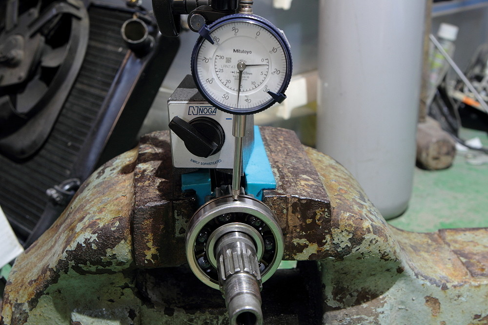 オイルシールを組むと途端にオイルシールの抵抗がブレーキの役目を担って慣性で回り続けられなくなるばかりか、手で回すのすら重く感じます。