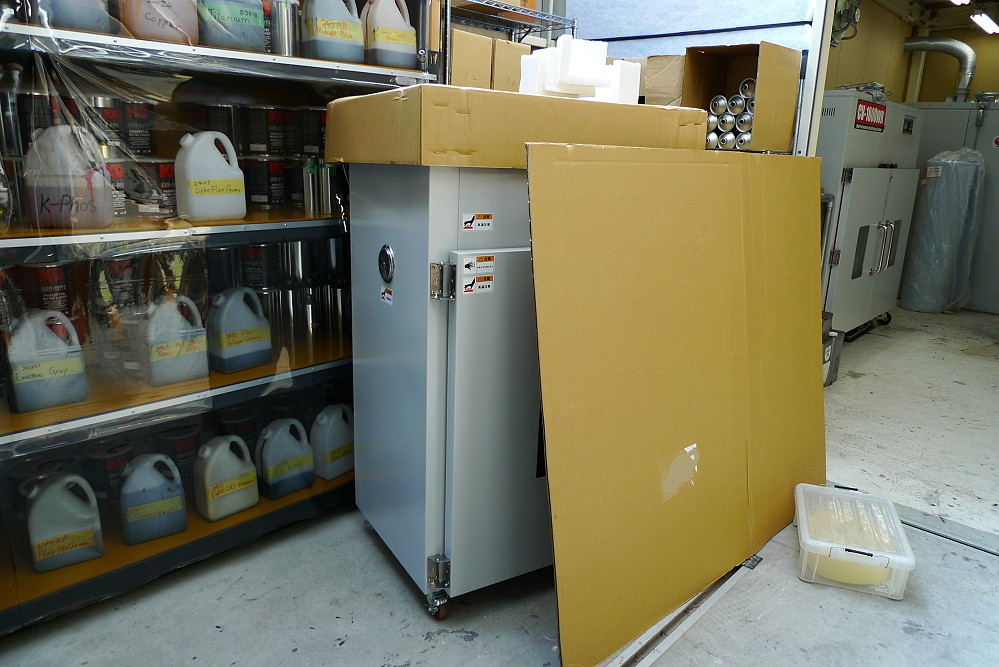 そして年始に購入して未だガレージ内が落ち着かず発送待ちでカーベックさんの倉庫で保管してもらっている新たな相棒の焼付け乾燥炉ともやっとご対面ができました^^ 今回自分のエンジンケースなども塗りたいので、ぶっちゃけそろそろ手元に必要な存在なのですが・・・。