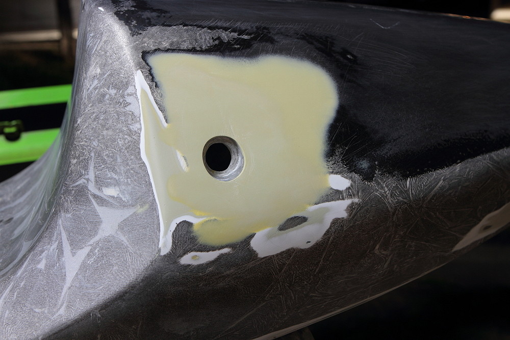 テール左右の留め位置に若干のズレがあった為に要修正ということで今回はそのズレ位置を解消させるべく留め位置だけ新規で作り直さねばならんっ!⇒地味に面倒くさいからやりたくない!⇒他の作業に逃げるw = 正直今さら修正板金して型取り⇒型仕上げ⇒製品抜き⇒色塗り⇒仕上げってのも残りの期間じゃ無理じゃね?と吹っ切れた感がw 逆にこのカウルをこのまま再利用すれば作業量的にも非常に楽になるんだよなぁ・・・。ということで、再利用決定w