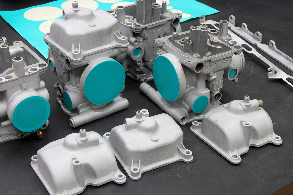 ※ 2015.8/10より当ガレージはセラコートの認定工場となり、高温焼付けの工程を必要としないコーティング技術を導入しましたので、下記ブログ記事内で「一部ガンコート処理が出来ないキャブレターがあるのでご注意ください」と記載しておりますが、現在ではそのような場合においてはセラコートでの施工が可能となっておりますのでご安心ください。