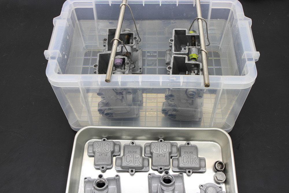 今度は特殊な薬品に各パーツを浸けてキャブ表面を塗装に適した状態にする為に化成処理を施して、