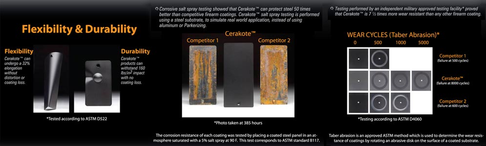 そしてそのような条件ながらセラコートは耐薬品性、耐傷性、耐食性、耐熱性、耐衝撃性などそれぞれに特化した塗料が開発されており、耐磨耗試験の結果ではガンコートの8倍の耐久性を記録していて、