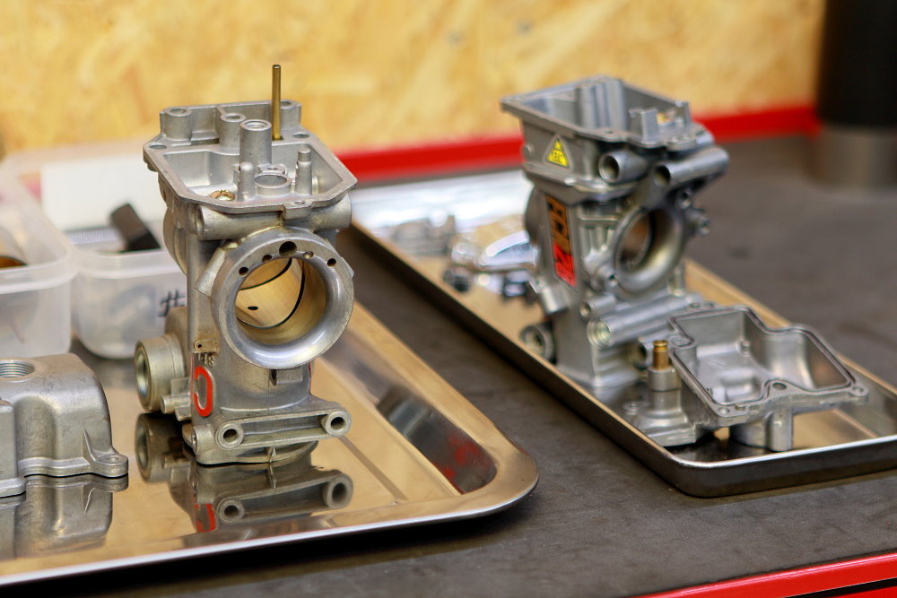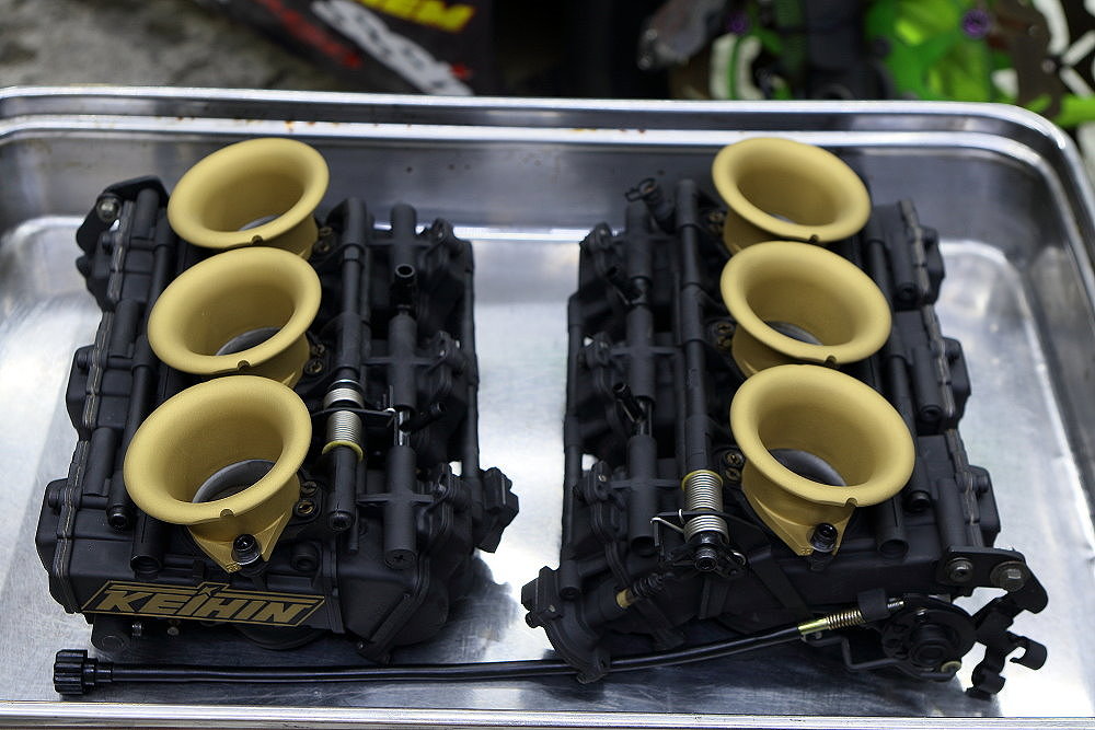 ということで、先日セラコートが完了したこちらのマットなFCRキャブを取り付けしにオーナーさん宅に伺ってきたのですが、この画像を見てこのFCRキャブが何用か想像が付く人って居ますかね・・・?