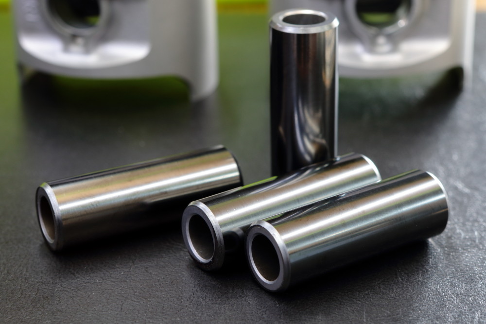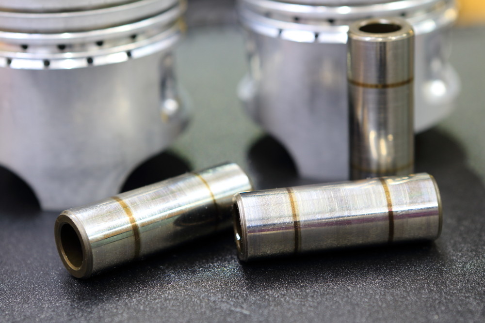 たぶん前回の修理時に購入したリプレイスピストンにセットで付属されてきたであろうピストンピンも既にメーカーからの販売は終了してしまっているので、こちらも再利用するとして、ピストンピンには表面精度を上げてピンボスへの攻撃性を減らす為にDLC処理をそれぞれに施して対応してみました。