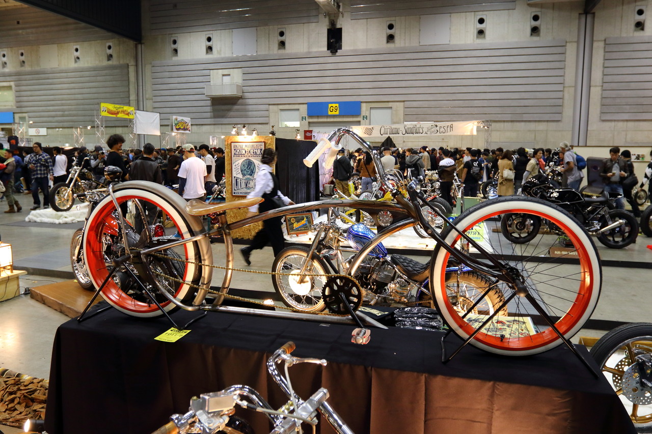 ただ、予定されていた搬入時間には間に合わなかったようで、搬入時に同時に行われるコンテストの審査を受けられず対象外となってしまったのが残念でしたが、今後リリース予定というSURE SHOT さんオリジナルのカーボン外装を見に常に人混みが出来ていて雑誌の取材の話なども既に数社受けているとのことで、このマシンの今後に期待ですね^^