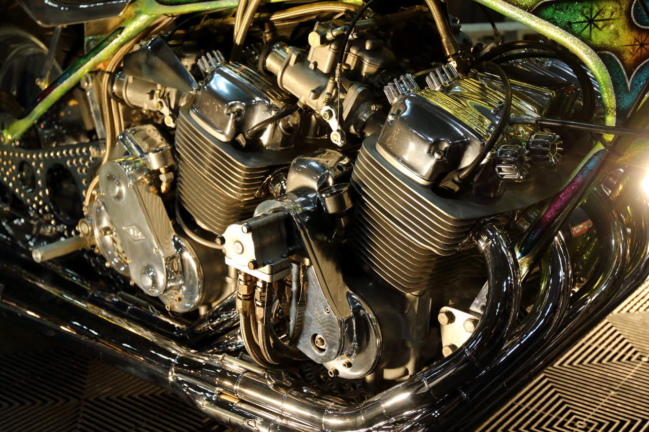 そして今回マシン制作のお手伝いをさせて頂いたSURE SHOT さん に置いてあったFOR SALE な古いハーレーのカスタム車に付いていたミクニのVMキャブ ですが、年代を合わせる為に元々4連のVMキャブを2連にしてまでVツインにこのキャブを持ってきているセンスは個人的に凄くカッコイイなと^^