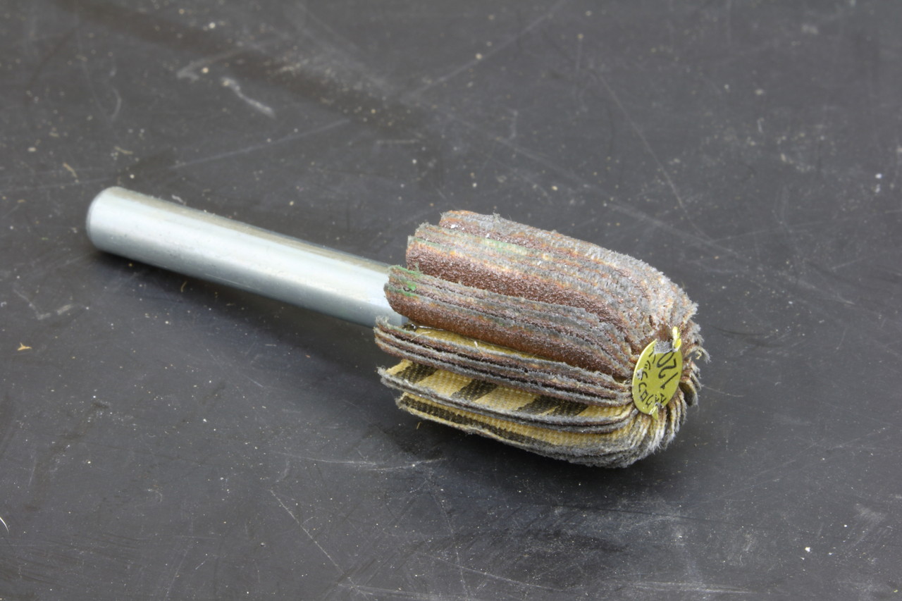 そして中仕上げが終わったら荒削りで出来た小さな凸凹をこの ホルダー装着タイプのバンド#120〜#320で整えて最終仕上げに向かいます。