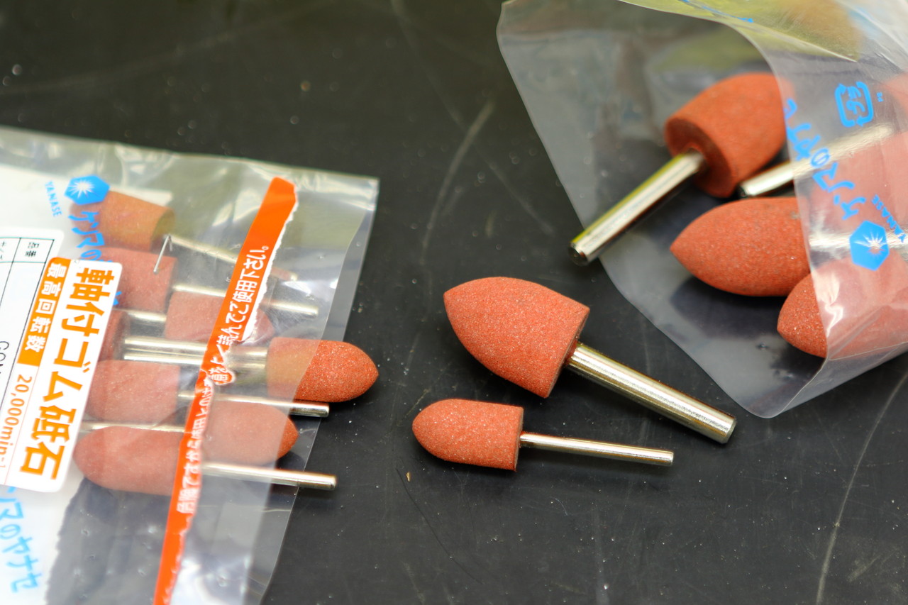それから以前は整形段階で軸付砥石なども使用していましたが、これが結構な曲者で深い傷を残すので好きじゃなかったのですが、